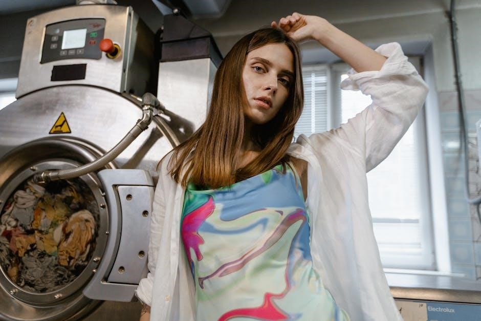 Worn drum bearings can cause significant noise and vibration during the spin cycle. Over time, the bearings that support the drum may deteriorate due to heavy use or poor maintenance. Symptoms include a grinding or screeching noise, excessive vibration, and potential error codes like E40 or E30. Inspect the drum bearings by removing the back panel and checking for visible wear or rust. If damaged, the bearings may need to be replaced. Regular cleaning of the drum and ensuring proper load balance can help extend the life of the bearings. In severe cases, water leakage may occur if the bearings fail completely. If you notice any of these signs, it’s important to address the issue promptly to avoid further damage to the machine. Replacement of drum bearings typically requires professional assistance, as it involves disassembling the washing machine; Always refer to the Electrolux manual for specific instructions or contact a certified technician for assistance.